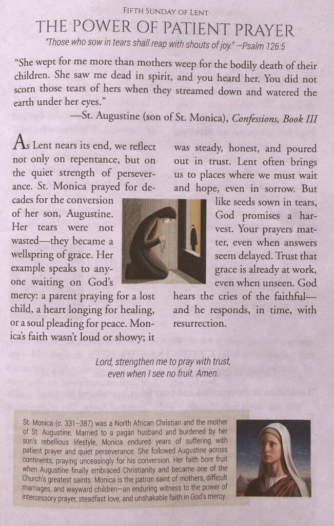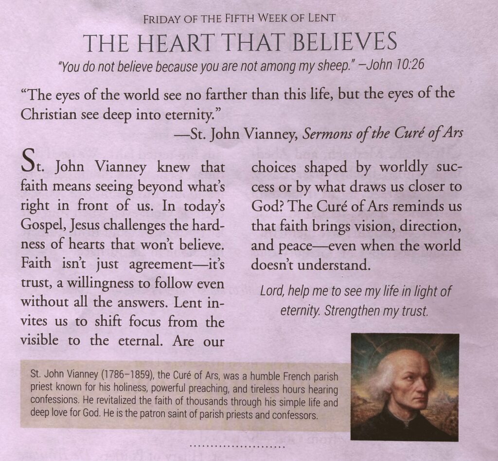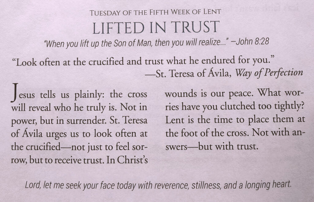 The passage today reminds us that Lent draws us to a love that keeps going when the crowd turns quiet, when palms are replaced by thorns. For our hearts remain with Him not only in praise, but in surrender.