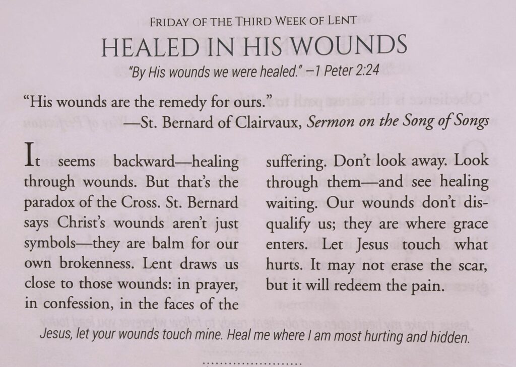 Lord, may the wounds of our Savior Jesus Christ heal the wounds of our souls. Amen.