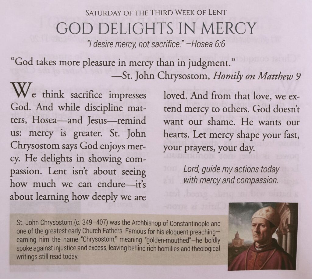 Day 25 – God Delights in Mercy – Saturday of the Third Week of Lent
